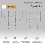 NEON-NIGHT Гирлянда Айсикл (бахрома) светодиодный, 5,6 х 0,9 м, черный провод "КАУЧУК", 230 В, диоды белые, 240 LEDГирлянда светодиодная Баxрома (Айсикл) 5,6x0,9м 240 LED БЕЛЫЙ черный каучук 3,3мм IP67 постоянное свечение 230В нужен блок 315-000 NEON-NIGHT