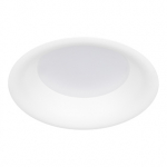 Встраиваемый светильник даунлайт с интегрированным в корпус драйвером. Мощность 16 Вт, св. поток 1340 лм, 84 лм/Вт, тёплый 3000 K, CRI>90, угол 100°, напряжение питания 230 В. Белый круглый корпус из алюминия, степень защиты IP20. Размер: диаметр 165 мм, высота 78 мм. Монтаж встраиваемый, установочное отверстие: диаметр 150 мм. Пульсация
