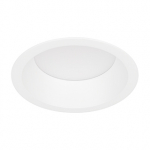 Встраиваемый светильник даунлайт. Мощность 14 Вт, св. поток 1170 лм, 83 лм/Вт, тёплый 2700 K, CRI>90, угол 85°, напряжение питания 230 В. Белый круглый корпус из алюминия, степень защиты IP54. Размер: диаметр 105 мм, высота 58 мм. Монтаж встраиваемый, установочное отверстие: диаметр 95 мм. Драйвер 26-42 В, 350 мА, пульсация