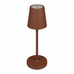 Настольный светильник со встроенным аккумулятором 1.5Вт, алюминиевый корпус, цвет терракотовый. Цвет ТЕПЛЫЙ БЕЛЫЙ 2200-2700-3000K, св.поток 110-130 лм, CRI(Ra)>80, угол 90°. Размер Ф75x250мм. IP54. Зарядка от сети переменного тока AC220-240V. Тип встроенного аккумулятора 1500мАч Li-ion, напряжение батареи 3.7V