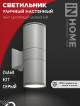 Светильник направл. света IN HOMEСветильник уличный настенный двусторонний НБУ ЦИЛИНДР-2хА60-GR алюминиевый серый IP54 IN HOME