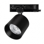 Светильник для трехфазных треков, 36 Вт с управлением TRIAC. Цвет свечения ДНЕВНОЙ 4000K, световой поток 3200 лм, угол 50°, CRI>90. Корпус круглый, металл, цвет черный, IP20. Размеры Ø100x93 мм. Входное напряжение AC220-240V. Драйвер встроенный 9-40В (300 - 1050мА), 50/60Гц, максимальная мощность 42 Вт.