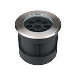 Встраиваемый светодиодный светильник для грунта и пола. Мощность 36Вт, световой поток 2824 лм, цвет дневной 4000К. CRI(Ra)>80, угол 10°. Круглый влагозащищенный корпус IP67, нержавеющая сталь. Экран закалённое стекло. Питание 230В, 36Вт. Размер DxH Ø210x125мм. Установка в отверстие DxH Ø195x119мм.