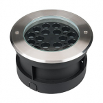 Встраиваемый светодиодный светильник для грунта и пола. Мощность 36Вт, световой поток 2824 лм, цвет теплый 3000К. CRI(Ra)>80, угол 20°. Круглый влагозащищенный корпус IP67, нержавеющая сталь. Экран закалённое стекло. Питание 230В, 36Вт. Размер DxH Ø210x125мм. Установка в отверстие DxH Ø195x119мм.