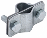 Соединительная клемма с болтом предназначена для крепления круглого проводника 8-10 мм по фасаду зданий либо на кровле. Материал – горячецинкованная сталь.