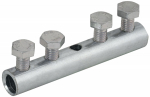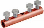 Зажим соединительный сквозной пруток-пруток предназначен для соединения круглых проводников. Способен зажимать проводники как соосно, так и параллельно друг другу. Состоит из двух пластин и зажимных болтов с гайками. Материал корпуса - медь.