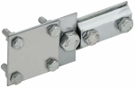 Зажим крестообразный с разделителем полоса/пруток-полоса/пруток предназначен для крестообразного соединения плоских и круглых проводников. Состоит из трёх пластин. Средняя, плоская пластина, позволяет увеличить количество соединяемых проводников. Материал корпуса - сталь с гальваническим цинковым покрытием.