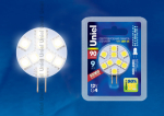Лампа светодиодная (LED) d28мм G4 1.6Вт 12В холодная дневного света 6500К UnielLED-JC-12/1,6W/DW/G4 90lm Round Лампа светодиодная. Упаковка блистер