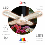 Фитолампа для растений светодиодная ЭРА GREEN LINE ФИТО-65W-PFR-E27-GR 5-ти лепестковая полного спектра 65 Вт Е27