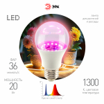 Фитолампа для растений светодиодная ЭРА FITO-20W-RB-E27 красно-синего спектра 20 Вт Е27