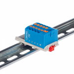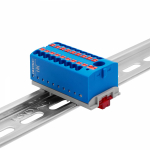 Блок распределительный с верт. адаптером на рейки шириной 15/35мм, зажим push-in, 1 ввод 6 кв.мм, 10 точек подключения 2,5 кв.мм, синий.Блок распределительный с верт. адаптером на рейки шириной 15/35мм, зажим push-in, 1 ввод 6 кв.мм, 10 точек подключения 2,5 кв.мм, синий
