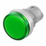 Лампа индикаторная в сборе 1 источник света зеленая круглая линза, плоская 9-24В AC/DC d22.2мм СВЕТОДИОД. (LED) IP68 DKC MitraСигнальная лампа со встроенным диодом 9-24В, зеленая, алюминиевое кольцо, зажим Push-In