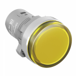 Лампа индикаторная в сборе 1 источник света желтая круглая линза, плоская 9-24В AC/DC d22.2мм СВЕТОДИОД. (LED) IP68 DKC MitraСигнальная лампа со встроенным диодом 9-24В, желтая, алюминиевое кольцо, зажим Push-In