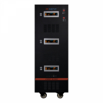 Переносной стабилизатор напряжения с LED-дисплеем, показывающим индикацию входного и выходного напряжения, а также индикацию режимов работы. Мощность - 5 000 ВА.