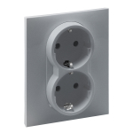 Розетка с заземлением, защитной крышкой и интегрированными защитными шторками Legrand Etika для скрытого монтажа, цвет "Алюминий", степень пылевлагозащиты IP44, номинальный ток 16А, напряжение ...