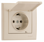 Розетка LEZARD RAIN 1-мест. механизм с накладкой с З/К скр. уст. 16А 220-250В со шторками беж.