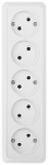 Розетка Intro Quadro 2-209-01пятиместная без заземлением 5х2P, 16А-250В, IP20, открытой установки, цвет белый. Материал термопласт.