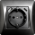Розетка электрическая 2К+З/2xUSB A, 125-250V (антрацит)