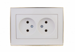 RAIN Розетка двойная б/з керамика белый с бок. вст. золото (10шт/120шт)