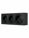 LETO Розетка тройная с/з закрытый корпус ПБТ чёрный бархат (7шт/84шт)