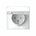 Механизм Systeme Electric серии ArtGallery в цвете белый розетки одинарной с заземлением, шторками и крышкой подходит для сетей 250 В, на ток 16 А.