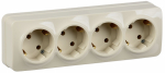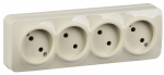 Розетка Intro Quadro 2-208-02 четырехместная с заземлением 4х2P+E, 16А-250В, IP20, открытой установки, слоновая кость
