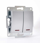 Выключатель 2-клавиш. с подсветкой LED 10А 250В серебро матовый LEZARD KARINAKARINA Выключатель двойной с подсветкой матовое серебро (10шт/120шт)