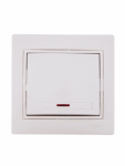 Переключатель 1-клавиш. в сборе 10А 250В с/у крем. белый IP20 LEZARD MIRAMIRA Выключатель проходной с подсветкой крем со вставкой (10шт/120шт)