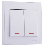 Выключатель 2-клавиш. с подсветкой LED в сборе 10А 250В белый LEZARD RAINRAIN Выключатель двойной с подсветкой белый (10шт/120шт