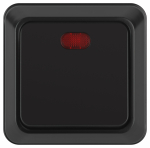 Механизм выключателя света клавишный на 1 пост 1 клавиша (непроходной). Цвет - черный, с Soft-Touch покрытием. Без фронтальной рамки. Уровень пылевлагозащиты IP20. Выключатель устанавливается в стандартный круглый подрозетник круглого сечения диаметром 60мм.