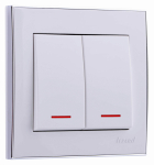 Выключатель 2-клавиш. с подсветкой LED в сборе 10А 250В о/у IP20 LEZARD NATANATA Выключатель двойной с подсветкой белый (10шт/120шт)