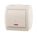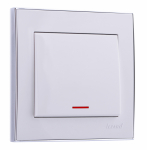 Переключатель 1-клавиш. с подсветкой LED в сборе 10А 250В о/у LEZARD NATANATA Выключатель проходной с подсветкой белый (10шт/120шт)
