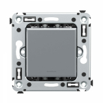 Механизм с быстрозажимными клеммами 1-клавишного выключателя в сборе Systeme Electric (ранее Schneider Electric) серии AtlasDesign в цвете карбон подходит для сетей 250 В, на ток 10 А.