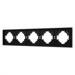 Рамка пластиковая на 5 постов, под встраиваемый механизм. Цвет - черный, с Soft-Touch покрытием. Среднего уровня герметичности IP20. Ориентация монтажа горизонтальная.