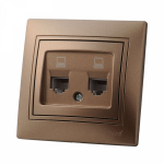 Розетка/коробка коммуникационная крепление в распор и на шурупах пластик белый LEZARD MIRAРозетка компьютерная двойная светло-коричневый перламутр со вставкой