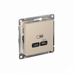 Systeme Electric AtlasDesign Шампань USB Розетка A + тип-C 45W высокоскор.заряд. QC,PD, мех.ATLASDESIGN USB РОЗЕТКА A + тип-C 45Вт высокоскор.заряд. QC, PD, механизм, ШАМПАНЬ