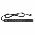 IEK ITK PDU Блок: 9 розеток, 1U, шнур 2м вилка С14 ал.проф., немецкий стандартITK PDU 9 розеток нем. ст, 1U, шнур 2м вилка С14 ал.проф