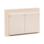 EKF Механизм розетки двойной, 16А, IP44, с заземлением, со шторками, с рамкой, с крышками, кремовый ЭпикаМеханизм розетки двойной, 16А, IP44, с заземлением, со шторками, с рамкой, с крышками, кремовый Эпика EKF
