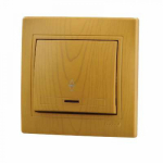 Переключатель 1-клавиш. с подсветкой LED в сборе 10А 250В с/у дерево LEZARD MIRAВыключатель 1-клавишный с подсветкой LEZARD MIRA 701-0801-114 С/П проходной сосна fixline(859160)
