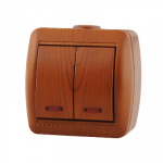 Выключатель 2-клавиш. с подсветкой LED в сборе 10А 250В о/у дерево IP20 LEZARD NATAВыключатель 2-клавишный с подсветкой LEZARD NATA 710-0800-112 О/П сосна
