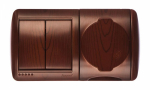 Переключатель 2-клавиш. в сборе 10А 250В о/у дерево LEZARD NATAВыключатель 2-клавишный LEZARD NATA 710-0700-106 проходной О/П ольха