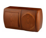 Переключатель 2-клавиш. в сборе 10А 250В о/у дерево LEZARD NATAВыключатель 2-клавишный LEZARD NATA 710-0800-106 проходной О/П сосна