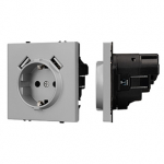 Механизм розетки с заземлением 1 пост 2 USB Type A C порта. Цвет - серый базальт, с Soft-Touch покрытием. Без фронтальной рамки. Уровень пылевлагозащиты IP20. Розетка устанавливается в стандартный подрозетник круглого сечения диаметром 60мм.