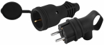 Набор вилка+розетка IP44 Пыле- и влаго-защита, максимальная мощность - 16 A/3500 В (кабель до 3x2.5мм2), цвет - черный, материал - каучук, тип: вилка - угловая, розетка прямая.