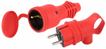 Набор вилка+розетка IP44 Пыле- и влаго-защита, максимальная мощность - 16 A/3500 В (кабель до 3x2.5мм2), цвет - красный, материал - каучук, тип: вилка - угловая, розетка прямая.