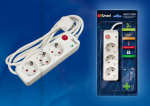 Удлинитель - сетевой фильтр 3 места 10А пластик белый шнур 3м ПВС IP20 UnielS-GSP3-3E Фильтр сетевой Uniel серии стандарт «Energy», с/з, 3 гн., шнур 3 м, защита от перенапряжения, фильтр помех, термопредохранитель