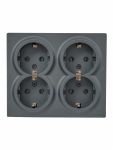 LETO Розетка четверная с/з закрытый корпус ПБТ графит (5шт/60шт)