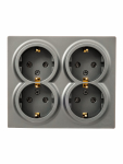 LETO Розетка четверная с/з закрытый корпус ПБТ платина (5шт/60шт)