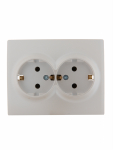 Розетка LEZARD KARINA 2-мест. в сборе с корпусом без З/К скр. уст. 16А 220-250В белыйKARINA Розетка двойная б/з ПБТ жемчужно-белый перламутр (10шт/120шт)