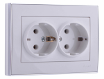 Розетка LEZARD RAIN 2-мест. в сборе с корпусом с З/К скр. уст. 16А 220-250В белыйRAIN Розетка двойная с/з керамика белый с бок. вст. хром (10шт/120шт)